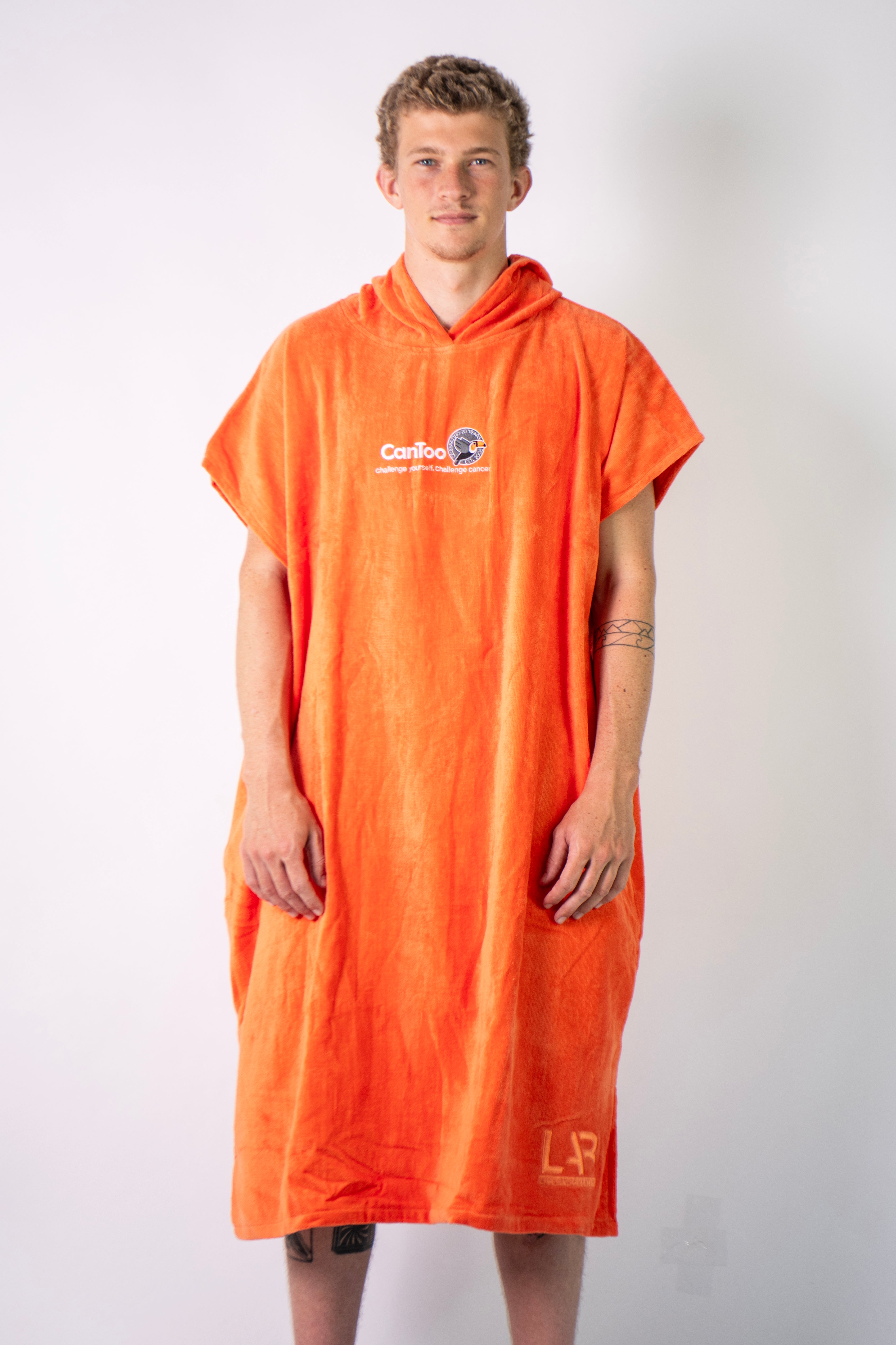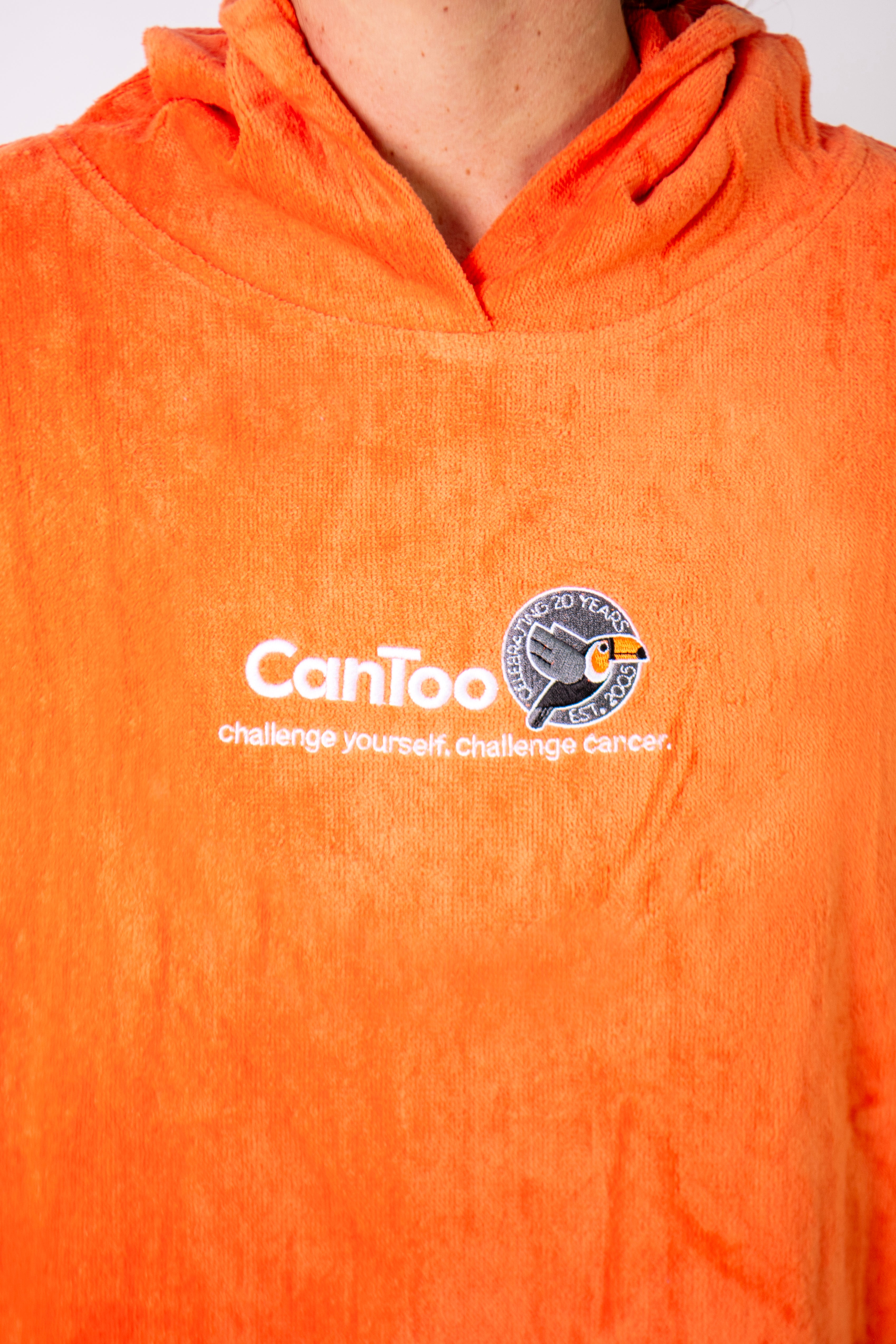 Limited edition 20th Anniversary CanToo Hooded Towel. Made with 100% Velour Cotton. Soft premium finish on the outer with an absorbent inner. Two pockets to keep keys or phone safe.